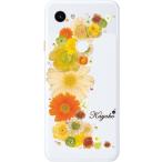 Google Pixel3a ケース グーグルピクセル3a カバー ラインストーン かわいい フラワー 花柄 らふら 名入れ 押し花風 クレッシェンドイエロー
