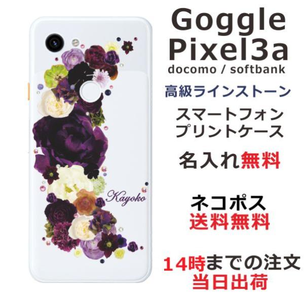 Google Pixel3a ケース グーグルピクセル3a カバー ラインストーン かわいい フラワー 花柄 らふら 名入れ 押し花風 クレッシェンドパープル