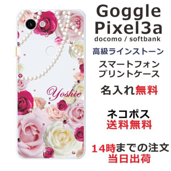 Google Pixel3a ケース グーグルピクセル3a カバー ラインストーン かわいい フラワー 花柄 らふら 名入れ 押し花風 ローズダークピンク
