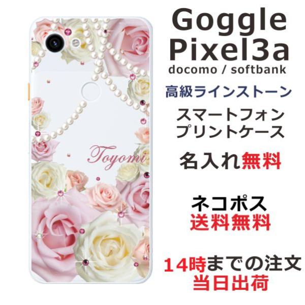 Google Pixel3a ケース グーグルピクセル3a カバー ラインストーン かわいい フラワー 花柄 らふら 名入れ 押し花風 ローズピンク