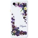 Google Pixel3a ケース グーグルピクセル3a カバー ラインストーン かわいい フラワー 花柄 らふら 名入れ 押し花風 パープルアレンジ
