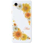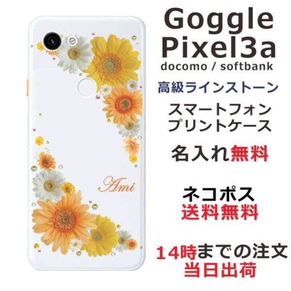 Google Pixel3a ケース グーグルピクセル3a カバー ラインストーン かわいい フラワー 花柄 らふら 名入れ 押し花風 イエローオレンジ