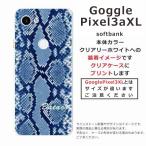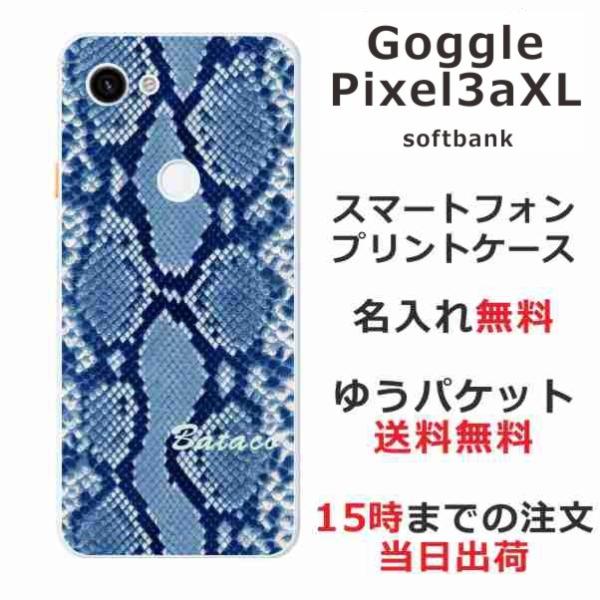 Google Pixel 3aXL ケース グーグルピクセル3aXL カバー らふら 名入れ へび柄ブルー