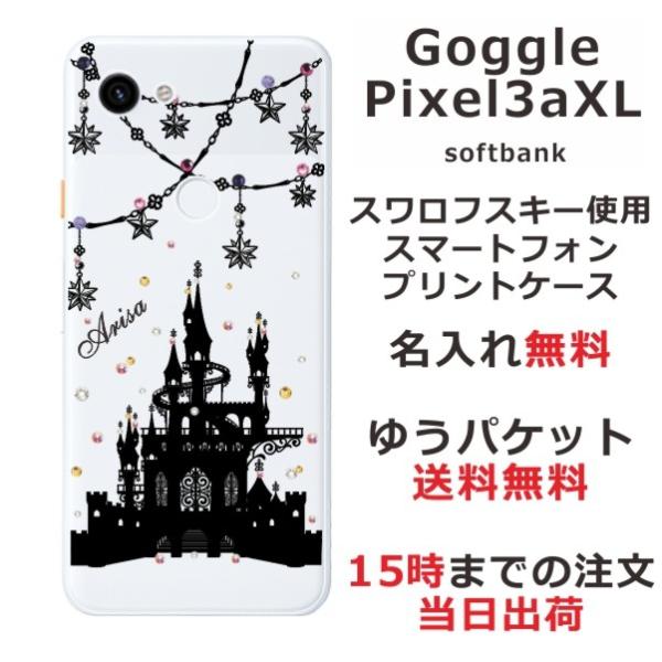 Google Pixel 3aXL ケース グーグルピクセル3aXL カバー ラインストーン かわいい らふら 名入れ シンデレラ城