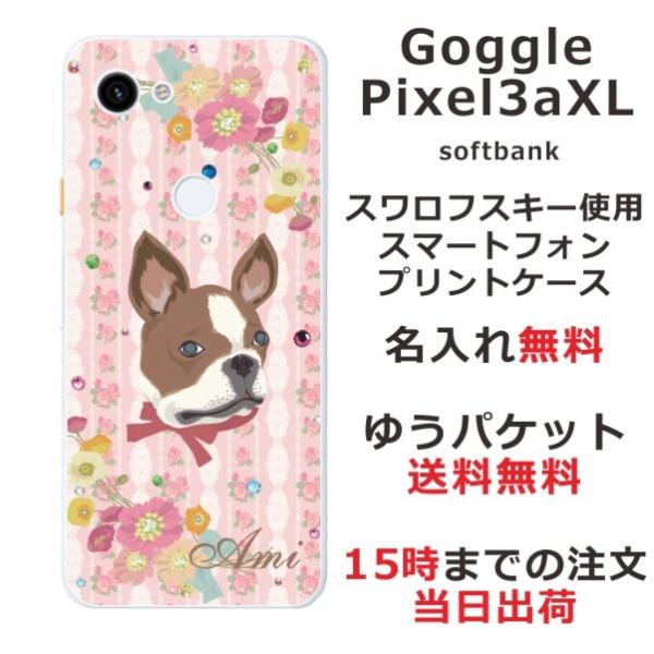 Google Pixel 3aXL ケース グーグルピクセル3aXL カバー ラインストーン かわいい らふら 名入れ フレンチブルドック