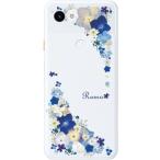 Google Pixel 3aXL ケース グーグルピクセル3aXL カバー ラインストーン かわいい フラワー 花柄 らふら 名入れ 押し花風 ビビットブルーフラワー