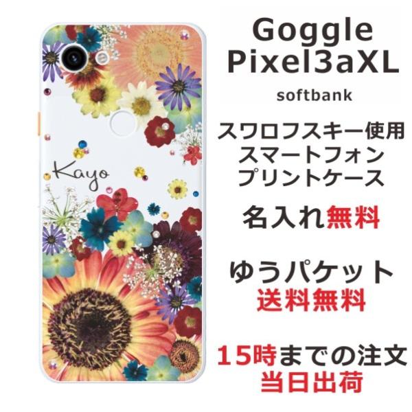 Google Pixel 3aXL ケース グーグルピクセル3aXL カバー ラインストーン かわいい フラワー 花柄 らふら 名入れ 押し花風 フラワーアレンジカラフル