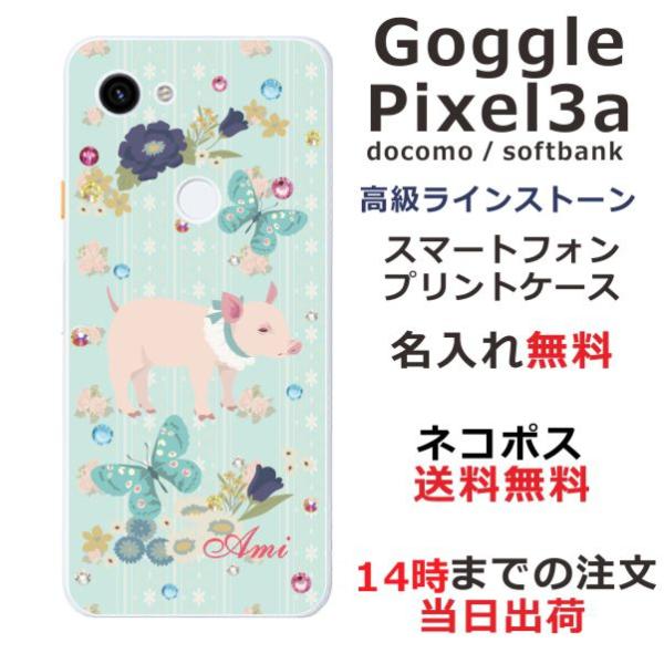 Google Pixel3a ケース グーグルピクセル3a カバー ラインストーン かわいい らふら 名入れ 豚 蝶