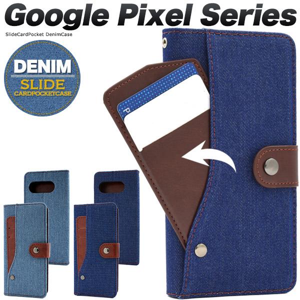Google Pixel 9a ケース 手帳型 磁気不使用 スライド式カード収納 デニム調 ジーンズデザイン グーグル ピクセル シリーズ スマホケース