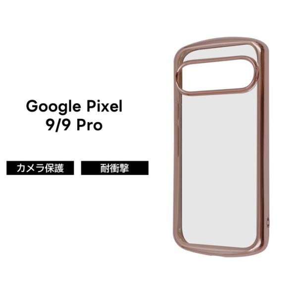 Google Pixel 9 ケース クリア 耐衝撃 グーグルピクセル9 9Pro GooglePixel9 メタリック ピンク 透明 クリアケース カバー ソフト スマホカバー スマホケース