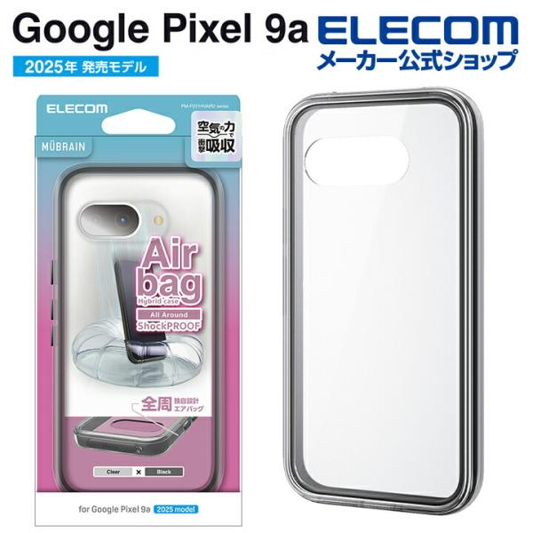 Google Pixel 9a 用 MUBRAIN ハイブリッドケース 全周エアバッグ ケース カバー ストラップシート付属 ブラック×クリア PM-P251HVAIR2BK エレコム 在庫処分