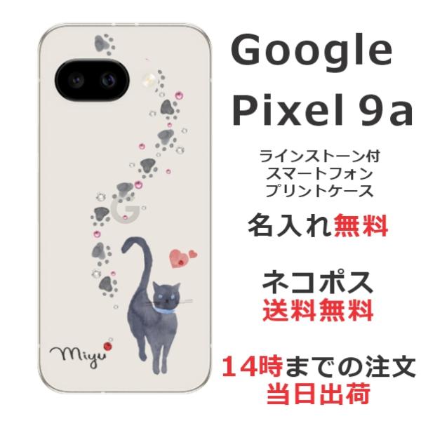 Google Pixel9a グーグルピクセル9a らふら 名入れ スマホケース ラインストーン 黒猫