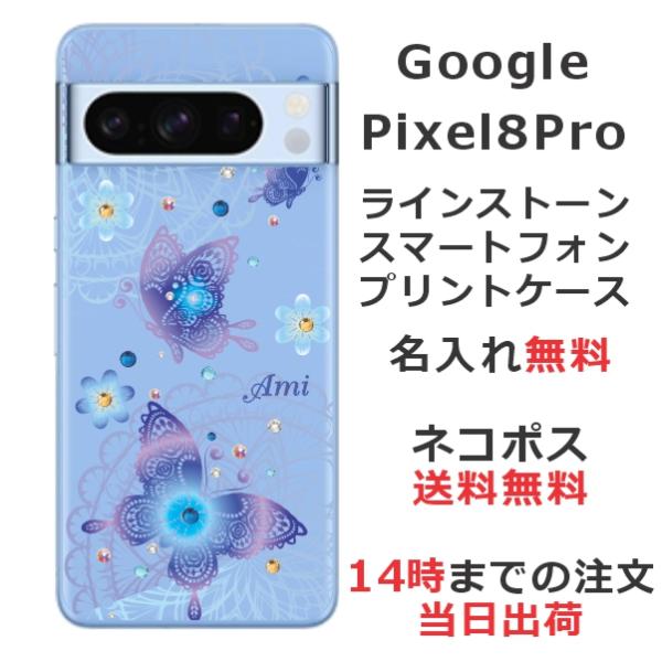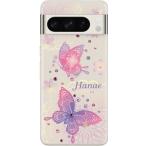 Google Pixel8Pro グーグルピクセル8プロ らふら 名入れ スマホケース ラインストーン フライングバタフライ