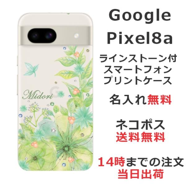 Google Pixel8a グーグルピクセル8a らふら 名入れ スマホケース ラインストーン スマホカバー 押し花風 ボタニカル グリーン