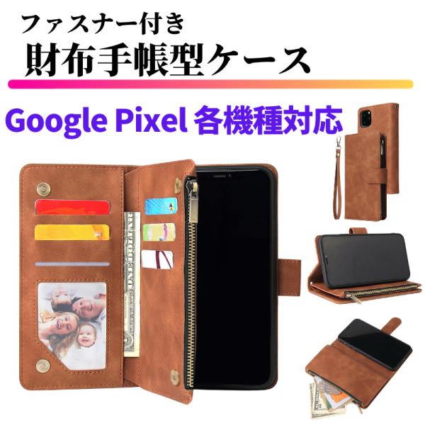 Google Pixel ケース 手帳型 お財布 レザー カードケース ジップファスナー収納付 おしゃれ アイフォン スマホケース 手帳 ブラウン