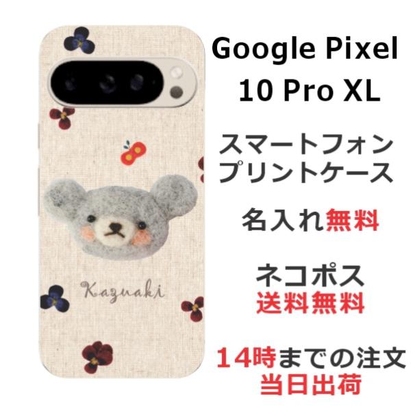 Google Pixel10 Pro XL グーグルピクセル10プロXL らふら 名入れ スマホケース フェルト風プリントベア