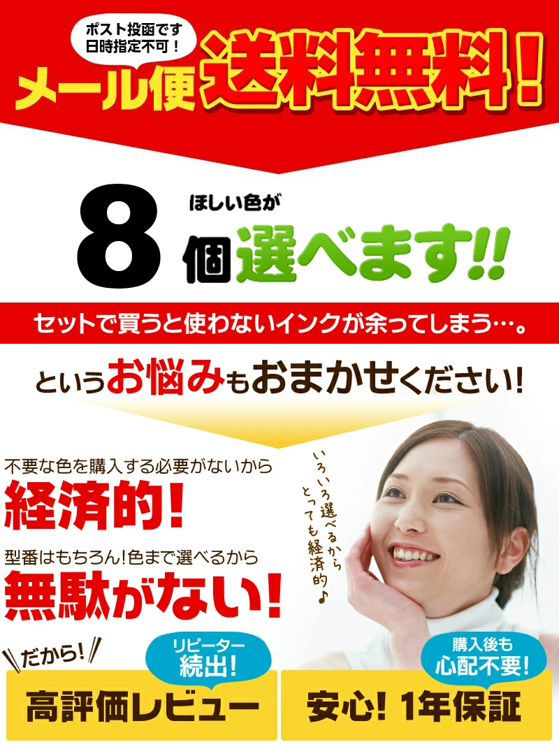ICチップ付きでインク残量も表示され純正タイプと同じようにご利用頂けます。プリンターの印刷コストを節約したい方にオススメです。