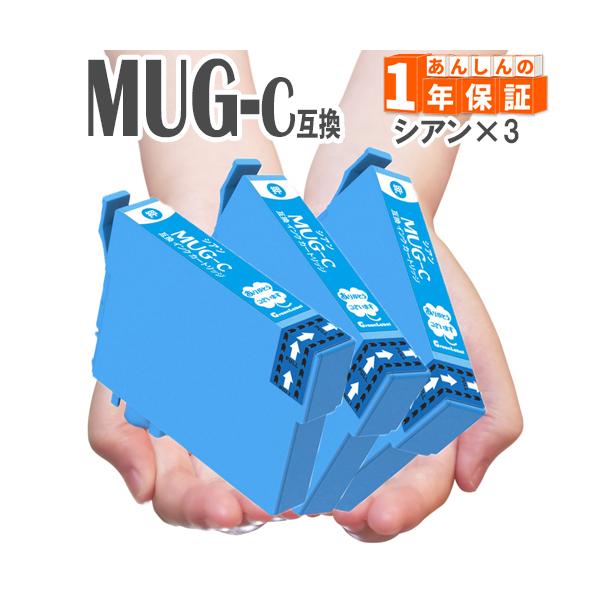 【互換品】 MUG-C シアン 3本 EW-452A EW-052A 互換インク プリンターインク エプソンインク マグカップ