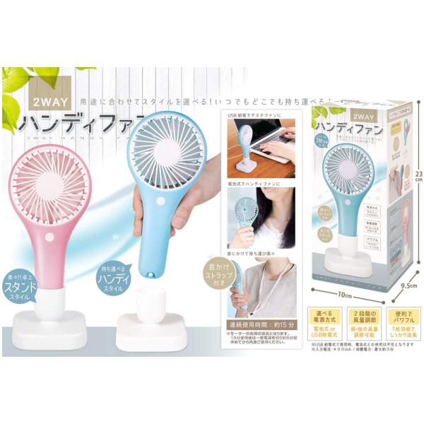 HAC 2WAYハンディーファン 電池・USB対応 ポータブル扇風機 HAC2138 (ピンク/ブルー)