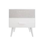 - ブランド:HACRAY 製品名 :Bluetoothテーブルスピーカー OTONI カラー:ウォールナット、オフホワイト サイズ :480 × 515 × 320mm(組立状態) 重量 :10.3kg 【スピーカー本体】 モデル名:HR-BT-Z11 最大出力:30W(15W ×2) 実効出力(RMS):27W(13.5W ×2) ドライバー:76.2 mm(3インチ)×2個 ディストーション:<0.3%(1W出力@1kHz) ステレオ分離:>35dB S / N(信号対雑音)比: 75dB 周波数特性:90Hz-18kHz Bluetooth動作周波数帯:2402-2480MHz Bluetoothバージョン:5.0 Bluetooth接続距離:最大10m TWS(True Wireless Stereo):可 Bluetooth通話:可 対応OS:iOS8/Android6.0 以降 ワイヤレス充電:最大10W 有線充電:最大20W 合計出力:20W 給電ポート:USB-A ×1 / USB-C ×1 / DC入力ポート ×1 引き出し容量:8.6L(435 × 300 × 110mm) 耐荷重:15kg 【専用ACアダプタ】 入力:AC 100~240V, 50/60Hz 出力:DC 16V/3A ※ 充電機能を使用する際は、本体に電源コードを接続してください(電源ONは不要)。 ※ ワイヤレス充電はQi対応デバイスに限ります。有線充電の使用可否は各デバイスの仕様に準じます。 ※ USBポートは給電専用です。データ通信には対応していません。 ※ 有線・ワイヤレス充電を同時に使用する場合、合計出力は最大20Wとなります。さらにスピーカーも同時に使用した場合は、アダプタの最大出力(48W)の範囲内で自動的に電力が分配されます。Hacray Bluetoothテーブルスピーカー OTONIは、サイドテーブルとBluetoothスピーカーを融合したスマート家具です。 引き出し収納、ワイヤレス / USB充電機能など、暮らしを快適にする機能を1台に凝縮。どんなインテリアにも自然に馴染み、くつろぎ・音楽・整った生活空間を演出します。 音楽と暮らしを一つに Bluetoothスピーカーとスマート充電機能を備えた、サイドテーブル一体型のスマートデザイン。 限られたスペースでも家具を増やすことなく、くつろぎの時間に音楽と便利さをプラスします。 最大30Wの迫力サウンド 15mm厚のキャビネットに、3インチのフルレンジスピーカーを左右に2基搭載。最大出力30Wのハイパワー設計で、ナチュラルな響きと奥行きあるサウンドを実現します。 映画館のようなステレオサウンド TWS機能に対応。同モデルを2台ペアリングし、さらに迫力を増したステレオ再生が可能に。 左右独立の立体音響が空間に広がり、臨場感あふれるサウンドを楽しめます。 Bluetooth接続でワイヤレス再生 スマートフォンやタブレットと簡単にペアリングでき、高音質な音楽生成が可能です。 ※対応OS:iOS8/Android6.0 以降 ハンズフリー通話可能 本体にマイクが内蔵されており、スマートフォンとBluetooth接続すれば、ハンズフリー通話が可能です。 10Wワイヤレス充電+20W有線急速充電 天面にはQi対応のワイヤレス充電機能を搭載、スマートフォンを置くだけで最大10Wの充電が可能です。背面にはUSB-AとUSB-C(合計20W)ポートを備え、タブレットやミニ加湿器などのUSBデバイスも同時に給電できます。 ※充電機能を使用する際は、本体に電源コードを接続してください。(電源ONは不要) ※ワイヤレス充電はQi対応デバイスに限ります。有線充電は各デバイスの仕様に準じます。 ※USBポートは給電専用で、データ通信には対応していません。 大容量引き出し メガネやケーブル、リモコンなどの小物をまとめて収納でき、ベッド周りをすっきり整理できます。生活感を隠しながら、スマートで整った空間を演出します。 15kg耐荷重の広い天板 ランプや本、観葉植物などを安心して置ける高耐荷設計。自由なレイアウトでインテリアの幅が広がります。 迷わないシンプル操作 本体には電源・再生/停止・音量+・音量-の4つの物理ボタンを搭載。直感的に操作できるシンプル設計で、家族みんなが迷わず使えます。ボリューム調節を含め、操作はスマートフォンからも可能です。 ファブリックに刺繍仕上げの操作ボタン スピーカー部分には落ち着いた風合いのファブリック素材を採用。操作ボタンは、刺繍で仕上げられており、ディテールにもこだわった上品なデザインです。 レトロモダンなミニマルデザイン 重厚感のあるウォールナットと、やさしく清潔感のあるオフホワイトの2カラー展開。ウォールナットは、木目調の高級感あふれる仕上げで、どんな空間にも自然に馴染みます。 オフホワイトは、北欧風やナチュラルテイストのインテリアと相性がよく、空間をやわらかく引き立てます。 脚部には無垢材を使用し、天然木ならではの温もりと質感が空間にアクセントを添えます。 簡単組立&床キズ防止設計 脚をねじ込むだけのシンプルな構造で、女性や初心者でも手軽に組み立て可能です。 脚先にはゴムキャップを備え、移動の際も床を傷つけにくい安心設計です。 構成品 1:Bluetooth スピーカー本体 2:脚 ×4 3:専用ACアダプタ 4:EVAパッド ×4 5:取扱説明書および保証書 製品仕様 ブランド:HACRAY 製品名 :Bluetoothテーブルスピーカー OTONI カラー:ウォールナット、オフホワイト サイズ :480 × 515 × 320mm(組立状態) 重量 :10.3kg 【スピーカー本体】 モデル名:HR-BT-Z11 最大出力:30W(15W ×2) 実効出力(RMS):27W(13.5W ×2) ドライバー:76.2 mm(3イ