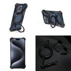 アルミニウム タフケース バンパー 磁石付き 背面磁石付き スタンド機能 MagSafe規格で吸着 男性向け iPhone 15 (2023年秋6.1インチ2眼) ブラック