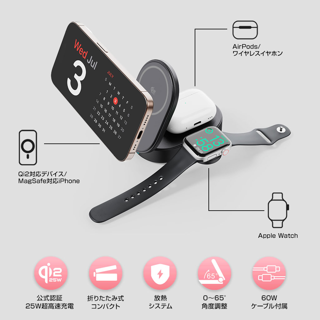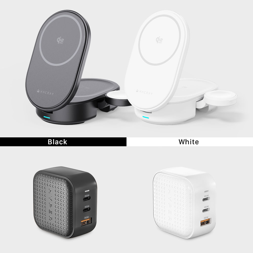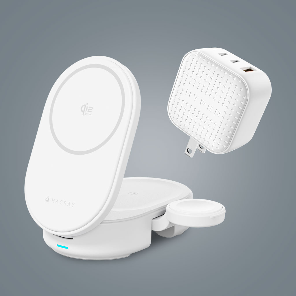 【充電セット】HACRAY Qi2 25W 3in1 ワイヤレス充電器 + HyperJuice 66W USB-C*2