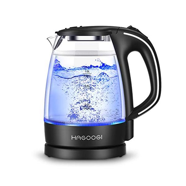 HAGOOGI 電気ケトル ガラス 1.0L LEDライト付き 二重構造 火傷防止 ポット湯沸かし 小型 おしゃれ お手入れカンタン 紅茶 お茶