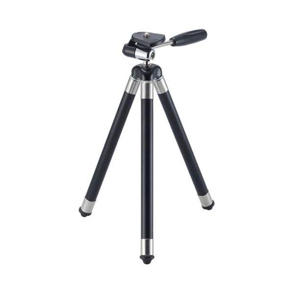 - コンパクトカメラからスマートフォンまで使える、携帯しやすい三脚キット【商品仕様】本体:8段丸パイプダボ式雲台:1ハンドル自由雲台全高:約1030mm使用時最低高:約260mm縮長:約280mm質量:約420g付属品:モバイルホルダー、アクションカメラ用トライポッドマウント、三脚ケース旅行やお出かけに1本あると便利な小型三脚です。ロッドアンテナのように引き延ばす8段式で、伸ばせば約103cmの高さになります。コンパクトカメラ、スマートフォンでの集合写真撮影に最適です。バッグなどに入れるときにも便利なケース付き。 コンパクトカメラ、スマ—トフォン、アクションカメラの撮影に便利な、小型軽量8段三脚 ロッドアンテナのように引き伸ばす8段式三脚。収納時はわずか約28cm、伸ばせば約103cmの高さになる旅行やお出かけに最適な小型三脚です。 8段階に高さを調整可能 8段のロッドアンテナのような脚(ダボ式)は、状況に合わせて高さを調節できます。脚を引き出して右へ”カチッ”と音がするまで回すと固定できます。 軽くコンパクトに収納 収納時はわずか約28cm、重量も500mlペットボトル飲料より軽い約420gなのでバッグに入れて気軽に持ち運びできます。 ハンドル付き自由雲台 撮影アングルを自由に変えられる小型雲台付きです。ハンドル付きなので操作が簡単。縦位置撮影も可能です。 スマートフォンにも対応 付属のモバイルホルダーを使用し、スマートフォンを取り付けて撮影することができます。幅約59mm〜約90mmまでのスマートフォンに対応しています。 アクションカメラにも対応 付属のアクションカメラ用マウントを使用してアクションカメラを取り付けて撮影することができます。 便利な三脚ケースが付属 持ち運びに便利な巾着式のケースが付いています。