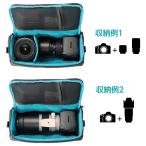- 【アウトレット 訳あり特価】商品本体やパッケージに多少のスレや汚れ等がありますが、商品状態は良く使用上の問題はございません。個々の状態についてのお問い合わせにはお答え出来ませんので、予めご了承ください。タテヨコ2方向アクセス可能なインナーバッグ【商品仕様】内寸法:約W295×H175×D120mm外寸法:約W315×H200×D140mm重量:約430g材質:ポリエステル付属品:中仕切り×3ショルダーベルトショルダーパッド収納物や、収納するバッグに合わせてタテヨコどちらからもアクセスできるインナーバッグです。普段使いのバッグやスーツケースに入れてカメラを持ち運ぶことができます。付属のショルダーベルトを使用することで、タテヨコどちらの向きでもショルダーバッグとして持ち運ぶこともできます。 タテヨコ2方向アクセス可能なインナーバッグ収納物や、収納するバッグに合わせてタテヨコどちらからもアクセスできるインナーバッグです。位置調節可能な中仕切り 位置調節が可能な中仕切りが3枚付属します。中は収納物を識別しやすい明るい色を採用しています。 収納例【収納例1】標準レンズ付きフルサイズ一眼カメラと交換レンズ1本。【収納例2】70-200mmクラスの望遠レンズ付きフルサイズ一眼カメラ。フタの内側には立体メッシュポケットを備えており、レンズキャップやクロス等の小物の収納に便利です。 水や汚れに強いPUコーティング素材水や汚れに強いPUコーティング素材を採用しています。 不意にファスナーが開かない自動ロック機能付きファスナー不意にファスナーが開くのを防止するYKK社の自動ロック機能付きファスナーを採用しています。引手を持たないとファスナーが開きません。 タテヨコどちらも可能なショルダー仕様付属のショルダーベルトを装着してショルダーバッグとしても使用ができます。ショルダーベルトの取り付け位置を変えることで、タテヨコどちらでも持ち運びや機材の出し入れができます。 普段使いのバッグに入れてトートバッグやバックパックなど普段お使いのバッグに入れるだけで、本格的なカメラバッグとしての機能と安心を付加させられるインナーバッグです。 スーツケースに入れてスーツケース内のインナーバッグとしても便利にお使いいただけます。 そのまま保管できるインナーバッグインナーバッグをバッグから出したまま保管できます。※カメラ機材を入れたたままでの長期間の保管には向かないのでご注意ください。サイズショルダーベルト取付け方法ショルダーベルトのフックは通したあとに金具部分を閉じてご使用ください。開いたまま使用すると破損し、バッグが落下する恐れがあります。