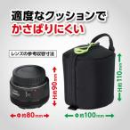 適度なクッション厚とソフトなクッション素材でレンズを保護。バッグ内でかさばりにくく、持ち運びのしやすいレンズポーチです。【商品仕様】参考収容寸法:約Φ80×H90mm外寸法:約Φ100×110mm重量:約60g材質:ナイロン参考収納レンズ:Canon RF50mm F1.8 STMCanon RF35mm F1.8 MACRO IS STMCanon EF-S18-55mm F4-5.6 IS STMCanon EF-M11-22mm F4-5.6 IS STMCanon EF-M15-45mm F3.5-6.3 IS STMNikon NIKKOR Z 28mm f/2.8SONY SEL2860SONY FE 50mm F1.8(SEL50F18)OLYMPUS M.ZUIKO DIGITAL 25mm F1.8FUJIFILM XF16F2.8RWRFUJIFILM XF23F2RWRFUJIFILM XF35F1.4RFUJIFILM XF60F2.4RMacroFUJIFILM XC35F2FUJIFILM XC15-45mmF3.5-5.6 OIS PZPanasonic LEICA DG SUMMILUX 15mm / F1.7 ASPH.適度なクッション厚とソフトなクッション素材でレンズを保護。バッグ内でかさばりにくく、持ち運びのしやすいレンズポーチです。 適度なクッションでかさばりにくい 適度なクッション厚とソフトなクッション素材でレンズを保護、バッグ内でかさばりにくく持ち運びのしやすいレンズポーチです。最大約Φ80×H90mmまでのレンズを収納可能。 撥水高強度ナイロン素材 撥水性のある高強度のナイロン素材を採用しています。 リングタイプの蛍光色プラー 指を通してサッと開けるリングタイプのプラーは、バッグ内で探しやすい蛍光色を採用。通常のコイルファスナーよりも耐摩耗性に優れ壊れにくい、YKKの織り込みファスナーを採用しています。 サッと開いて取り出しやすい 開閉はタテ方向なので、コンパクトな動作ですぐにレンズを取り出すことができます。 ベルト通し付き ポーチ背面のベルト通しにベルトを通して持ち運ぶことも可能。レンズを取り出しやすいお好みの位置に固定して使用できます。 使用イメージ