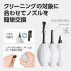 - 強力エアーでゴミを吹き飛ばすマルチノズル仕様のシリコン製ブロアー【商品仕様】全長:約146mm(ロングノズル装着時)約124mm(ソフトショートノズル装着時)直径:約53mm重量:約56g(付属品を全て含む)材質:本体/ソフトショートノズル:シリコンゴムロングノズル:PPブラシ:ナイロンカメラ、交換レンズ、OA機器などのクリーニングに。用途に応じてノズル交換ができる、マルチノズル仕様のシリコン製ブロアーです。広範囲にパワフルな風を送り、ブラシも装着できるロングノズルと、細部までピンポイントに清掃できるショートノズルが付属。これ一つで、様々な機材のクリーニングがカバーできます。クリーニングの対象に合わせてノズルを簡単交換メンテナンス対象や場所に合わせ、ノズルを簡単に交換できます。広範囲の清掃にはブラシの装着も可能なロングノズル、精密な細部には傷つけにくいシリコン製ショートノズルが活躍。様々な機材のクリーニングがカバーできます。握りやすいシリコン製ポンプ手のひらにフィットして握りやすいグリップデザインです。表面に施した立体ラインがポンピング時の滑りを防ぎ、狙った場所にしっかりと風を送ることができます。素材には、経年劣化に強く耐久性に優れたシリコンゴムを採用。気になるゴム臭さがほとんどなく、気持ちよくメンテナンス作業を行えます。広範囲清掃&ブラシ装着可能なロングノズル隙間の奥まで届くロングノズルは、ブラシを装着したままブロアーの風を送ることも可能。凹部や隙間に入ったゴミやホコリをブラシでかき出しながら、強力なブロアーで吹き払います。細部の清掃&機器を傷つけにくいショートノズル先端までソフトなシリコン素材のショートノズルは、清掃中に機材と接触しても傷をつけにくく、大切なカメラやOA機器にも安心して使用できます。ブロアーの先端を細かくコントロールできるので、カメラボディの溝、レンズマウントの接点、PCキーボードの隙間など、細部のホコリやゴミを的確に吹き飛ばします。立てて置きやすいスタンド形状ブロアーの底部は、テーブルの上などに立てて置きやすい幅広のスタンド形状です。横に倒れた状態でも、表面の立体ラインが転がりを防ぎます。便利なストラップホール付き本体のノズル付け根と着脱式ブラシに、それぞれ持ち運びに便利なストラップホールを設けています。ブラシと本体を紐などで繋げば紛失防止に、本体にハンドストラップなどを取り付ければ携帯性が向上します。※画像のハンドストラップは付属していません。カラーバリエーション