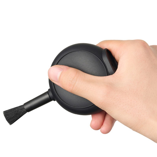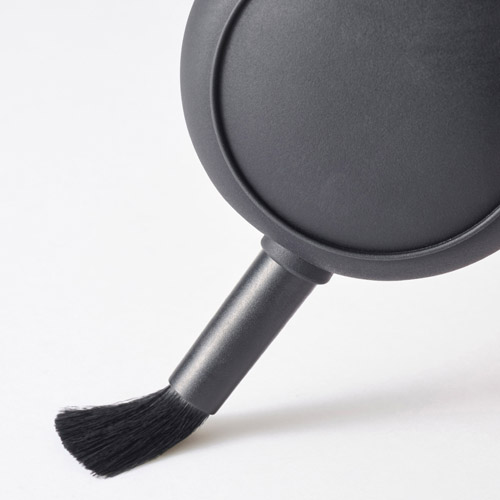 - 薄型形状でスマートに持ち運べるブラシ付き小型ブロアー【商品仕様】全長:約118mm(ブラシ装着時)約86mm(ブラシ非装着時)幅:約67mm厚み:約36mm重量:約35g材質:シリコンゴム、PP、山羊毛レンズやカメラ、OA機器などのクリーニングに適したシリコン製ブロアー。薄型、フラットな形状で、バッグやカメラケースの隙間にもすっきり収納できます。コンパクトなサイズで持ち運びしやすく、撮影現場でもスマートに使用可能。便利なブラシが付属しており、シーンに応じてブローとブラッシングを使い分けた清掃が行えます。限られたスペースを有効に活用できる、携帯性に優れたメンテナンスアイテムです。薄型形状でバッグの隙間にすっきり収納厚みを抑えたフラットな形状により、バッグやカメラケースのポケットや隙間に場所を取らずに収納できます。モバイルバッテリーに近いコンパクトなサイズで、特に荷物が多い撮影環境において効率的なパッキングが可能。一般的な楕円形ブロアーでは収まりにくかったスペースも有効に活用でき、持ち運びの際の負担を抑えます。携帯性に優れたコンパクトなサイズ通常のブロアーよりもコンパクトなサイズで、ポケットや小さなポーチになど入れて持ち運びしやすく、外出先でも気軽にレンズやセンサーのクリーニングが行えます。移動の多い撮影や旅行時にもかさばらず、必要な時にすぐ取り出せる実用的なサイズです。細部の清掃に便利なブラシ付きチリやホコリを効率よく取り除けるブラシが付属しています。ブロアーだけでは取りにくいレンズの隙間やファインダー、ダイヤル周りなど、ブラッシングを併用することでしっかりと除去。カメラ細部のクリーニングにも適しています。指先でつかみやすい安定したフラット形状指先でつかみやすい丸くて平らな形状は、手に持った際の収まりが良く、安定したグリップでブロー作業を行えます。狙った箇所へ的確に空気を送り込めるため、快適にメンテナンスを進めることができます。機材を傷つけにくいソフトノズルノズルの先端まで全てソフトなシリコン素材で作られています。使用中に誤ってノズルが機材に接触してしまった場合でも、大切なカメラやレンズを傷つける心配がありません。安定して自立する幅広のスタンド形状ブロアーの底部を幅広のスタンド形状にしており、テーブルの上などに安定して立てて置くことができます。一般的な楕円形ブロアーのように横に置いた際に転がってしまう心配もなく、作業中も置き場所に困りません。カメラ以外の幅広い機器の清掃にも対応カメラやレンズはもちろん、スマートフォンの端子、パソコンのキーボード、フィギュアやプラモデルなどの清掃にも便利です。様々な機器の細かい箇所のホコリを優しく取り除けるため、日常の幅広いメンテナンスシーンで活躍します。サイズイメージ