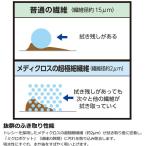 - 東レの高分子科学技術から生まれた超極細繊維(マイクロファイバー)を使用した高性能クリーニングクロス『トレシー(R)』に、臭いの元となる菌の増殖を抑制する制菌加工を施した商品です。超極細繊維(マイクロファイバー)を使用した高性能クリーニングクロス東レの高分子科学技術から生まれた超極細繊維(マイクロファイバー)を使用した高性能素材『トレシー(R)』を採用しました。クロス上の菌の増殖を抑制する制菌加工クロスに付着した菌の増殖を抑制する制菌加工「マックスペック加工」を施しました。制菌加工 マックスペック(R)東レが開発した制菌加工技術により制菌成分が繊維の中に入っているため、制菌効果が長い間持続しクロスを清潔に保ちます。※黄色ブドウ球菌に効果があります。抜群のふき取り性能トレシーを採用したメディクロスの超極細繊維(約2μm)が拭き取り面に密着し、「ミクロポケット」(繊維の隙間)に汚れを取り込み除去します。吸水性にすぐれ、水や油をすばやく吸い上げます。汚れの再付着を抑えるミクロポケット繊維と繊維の隙間「ミクロポケット」に汚れが取りこまれることで汚れの再付着を抑えます。洗って繰り返し使える環境にやさしい商品洗濯することでふき取り性能が回復するので長くご使用いただけます。