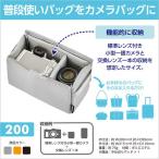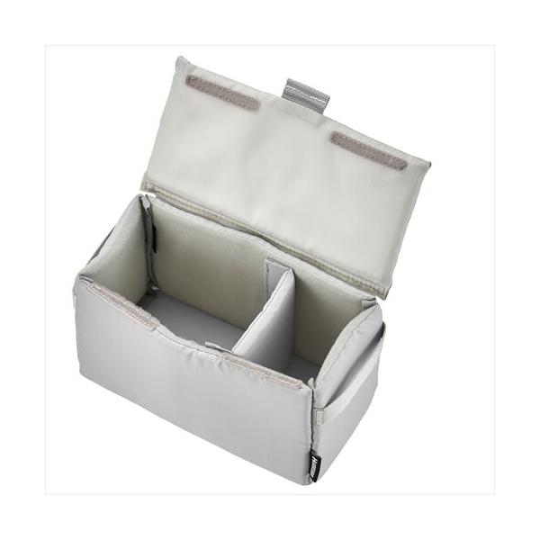 - 普段使いのバッグがカメラバッグに早変わり!標準レンズ付き小型一眼カメラと交換レンズ一本の収納を想定したサイズです。【商品仕様】内寸法:約W200×H120×D95mm外寸法:約W215×H135×D110mm重量:約75g材質:ポリエステル付属品:中仕切りパッド×1枚そのまま入れるだけでいつものバッグがカメラバッグに早変わり。全面の厚いクッションが機材をしっかり保護します。クッション入りのフタはホコリの侵入や上からの衝撃から守り、不要な時は取り外しが可能です。標準レンズ付き小型一眼カメラと交換レンズ一本の収納を想定したサイズです。 普段使いのバッグをカメラバッグに! そのまま入れるだけでいつものバッグがカメラバッグに早変わり。全面の厚いクッションが機材をしっかり保護します。 機材に合わせて調整可能な仕切り 収納する機材に合わせて面ファスナーで移動が可能な仕切りが1枚付属しています。 取り外し可能な蓋 クッション入りのフタはホコリの侵入や上からの衝撃から守り、不要な時は取り外しが可能です。 便利なパーツ類 天面にはバッグに収納した際にも開閉しやすいツマミ付き、バッグからの取り出しなどに便利なサイドハンドル。 清掃性に優れた内装 内部側面には機材にやさしい起毛生地、内部底面には、ホコリや汚れがたまりにくく、お手入れがしやすい平滑な生地を使用 忘れ物防止に 機材をまとめて置けるので「カバンを変えたらあれを忘れた!」を減らすことができます。