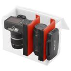 - 普段使いのバッグがカメラバッグに早変わり!標準レンズ付き初級一眼カメラと交換レンズ一本の収納を想定したサイズです。【商品仕様】内寸法:約W220×H160×D115mm外寸法:約W235×H175×D130mm重量:約105g材質:ポリエステル付属品:中仕切りパッド×2枚そのまま入れるだけでいつものバッグがカメラバッグに早変わり。全面の厚いクッションが機材をしっかり保護します。クッション入りのフタはホコリの侵入や上からの衝撃から守り、不要な時は取り外しが可能です。標準レンズ付き初級一眼カメラと交換レンズ一本の収納を想定したサイズです。 普段使いのバッグをカメラバッグに! そのまま入れるだけでいつものバッグがカメラバッグに早変わり。全面の厚いクッションが機材をしっかり保護します。 機材に合わせて調整可能な仕切り 収納する機材に合わせて面ファスナーで移動が可能な仕切りが2枚付属しています。 取り外し可能な蓋 クッション入りのフタはホコリの侵入や上からの衝撃から守り、不要な時は取り外しが可能です。 便利なパーツ類 天面にはバッグに収納した際にも開閉しやすいツマミ付き、バッグからの取り出しなどに便利なサイドハンドル。 清掃性に優れた内装 内部側面には機材にやさしい起毛生地、内部底面には、ホコリや汚れがたまりにくく、お手入れがしやすい平滑な生地を使用 忘れ物防止に 機材をまとめて置けるので「カバンを変えたらあれを忘れた!」を減らすことができます。