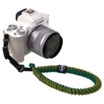 - パラコードを編んで作られたカラフルな小型一眼カメラ用リストストラップ