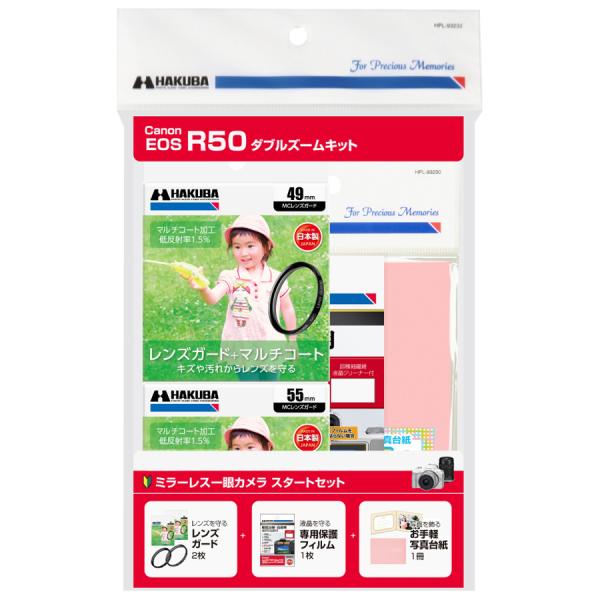 - 【返品種別A】□「返品種別」について詳しくはこちら□オリジナルモデルです! ★オリジナルポイント・レンズフィルター2枚と液晶保護フィルムがセット・写真台紙Lサイズが付属◆ミラーレス一眼スタートセット「Canon EOS R50 ダブルズームキット」用◆セット内容:レンズフィルター(49mm、55mm)、液晶保護フィルム、写真台紙Lサイズ[JEOSR50WZK]ハクバカメラ>レンズアクセサリー>フィルター>レンズ保護・紫外線吸収>49mm