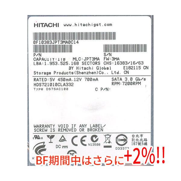 【ブラックフライデー!ポイント3倍!11/25-11/30!】HITACHI製HDD HDS721010CLA332 1.0TB SATA300 7200rpm [管理:1000008195]