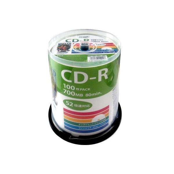 磁気研究所 HI DISC HDCR80GP100 CD-R データ用 700MB 52倍速 ワイドエリアホワイトプリンタブル スピンドルケース 100枚