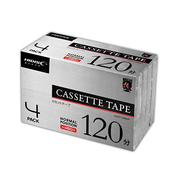 - サイズ:【4巻パック】◆商品名:カセットテープノーマルポジション 120分 4巻【規格】ノーマルポジション【用途】音楽用【記録時間】120分(片面60分)【入数】4巻 【パッケージ】プラスチックケース【8巻セット】HIDISC HDAT120N4P オーディオテープ 120分 ノーマルポジション 4巻パック×2個