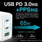 AC充電器 GaN(窒化ガリウム)採用 PD3.0 Type-C/Type-A対応 65W ホワイト ML-PDUS3PG65WH