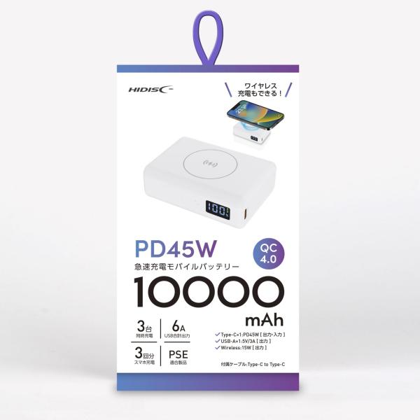 HIDISC 卵サイズで PC も充電可能なモバイルバッテリー PD45W対応 HD2-MBPD45W10TGWH【送料無料】