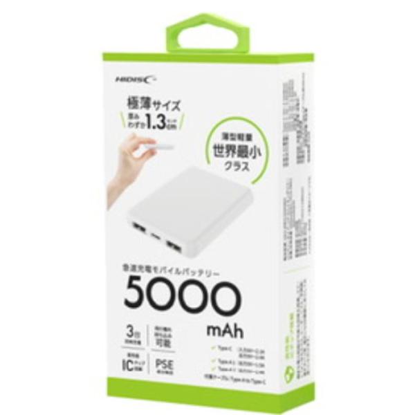 - 〇Type-C入出力対応 〇バッテリー残量表示 〇保護回路(ショート、過充電、過放電、過電流、加熱防止) 〇PSE適合製品(ヒ−タベスト・空調服対応) 〇付属品:USB TYPE AtoUSB TYPE Cケーブル 1本(約30cm) 〇コンパクトなサイズ 〇3台同時充電 〇空調服やヒーターベストにも(一部ご利用いただけない製品もございます) 【製品スペック】 ■バッテリー容量:5000mAh ■入力: Type-C:DC5V/2.1A ■出力:Type-C:DC5V/2.4A USB 1:DC5V/1.5A USB 2:DC5V/2.4A MAX:2.4A ■本体:62.3*13*89 ■充電時間:約3時間 ■充電回数:500回 ■質量:約98g HIDISC HD3-MBTC5000WHは、そのコンパクトなデザインと高い機能性で、日常生活の様々なシーンで活躍します。わずか1.3cmの薄さで、持ち運びが非常に便利です。5000mAhの容量は、スマートフォンやタブレットなどのデバイスを効率的に充電するのに十分な大きさで、3台のデバイスを同時に充電することが可能です。 また、空調服やヒーターベストなどの特定のウェアラブルデバイスのサブバッテリーとしても使用可能です。これにより、アウトドア活動や寒冷地での作業時にも大いに役立ちます。ただし、一部の製品では使用できないものもあります。 このモバイルバッテリーは、Type-CとType-Aの出力ポートを備えており、様々なデバイスに対応しています。安全性も確保されており、PSEマークとIC保護機能が付いているため、過充電や短絡からデバイスを守ります。 日常の使用はもちろん、旅行や緊急時の備えとしても最適なHIDISC コンパクトモバイルバッテリーは、あなたのデジタルライフの強いサポーターとなります。