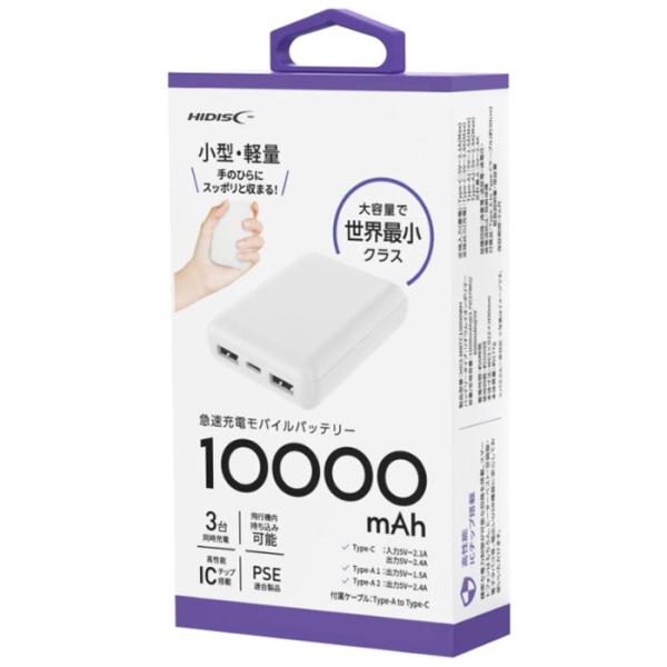 HIDISC 高性能IC10000mAhバッテリー白 HD3-MBTC10000WH