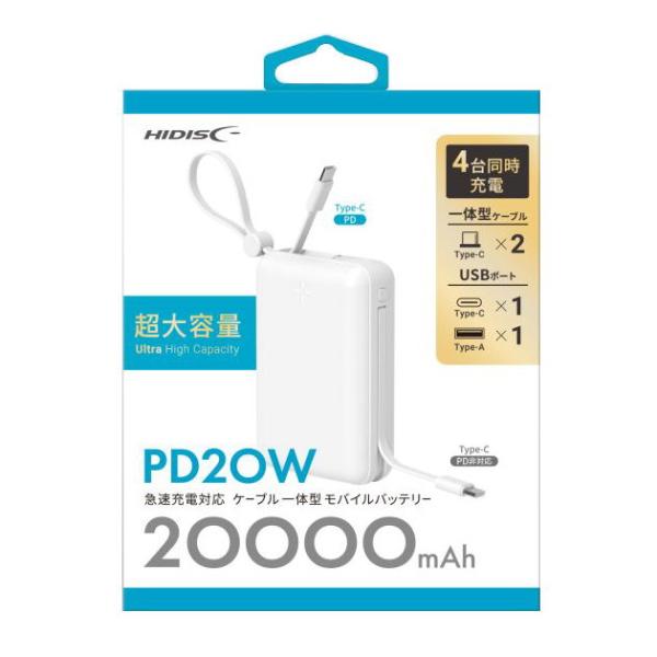 HIDISC PD20W急速充電対応 ケーブル一体型モバイルバッテリー 20000mAh(ホワイト) HD4-MBTC20W2CPD20WH 返品種別A