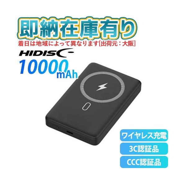 ○[即納在庫有り] HD4-MBFT3C10PD20BK 磁気研究所 HIDISC ワイヤレス充電対応 10000mAh PD20W対応 モバイルバッテリー ブラック 3C認証品 CCC認証品