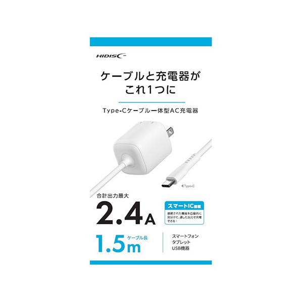 HIDISC Type-Cケーブル一体型AC充電器 充電コード忘れの心配なし ホワイト HD-AC12WC15WH