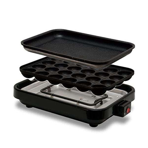 - 商品詳細 商品説明 フラットプレート&たこ焼きプレート、2種のプレート付属 2つのプレートで卓上クッキングが幅広く楽しめる♪ ●フッ素コーティング加工について 付属のプレートは、フッ素コーティング加工されています。加工面を保護するために、以下の点にご注意ください。 【仕様】 電源 AC100V 50/60Hz 消費電力 1000W 電源コード長さ 約1.4m たこ焼きプレート:凹24個 付属品:取扱説明書 【サイズ・容量】 本体サイズ:約幅360×高さ70×奥行240mm 本体重量:約738g フラットプレート:約350g たこ焼きプレート:約680g フラットプレート:約幅300×高さ25×奥行200mm 【規格】 素材・成分:本体:PP プレート:アルミ(表面フッ素樹脂加工) ・必要以上の予熱・空焼きをしない ・金属製の串やヘラ・フォークなど先のとがったものは使わない ・お手入れの際、台所中性洗剤以外の酸性・アルカリ性の洗剤・シンナー・ベンジンなどの溶剤は使用しない。 ・使用後は毎回お手入れをおこない、プレートを汚れたままにしないでください。 ・フッ素コーティング加工は、食品衛生法に適合しています。長時間の使用において傷ついたり、がれたりすることがありますが、体内に入っても衛生上は問題ありません。あなたにおすすめ!ホットプレート お買い得!1000円ポッキリ