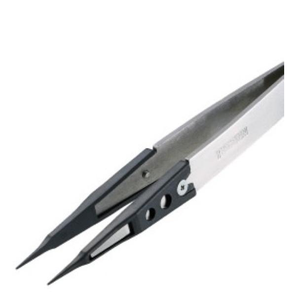 - ■特徴 チップは静電気対策されたエンジニアリングプラスチックを使用しています。 ESD対策仕様商品です。 ■用途 静電気の帯電にデリケートな電子部品、プラスチックの取り扱い。 ■仕様 ESD管理値:Rg<1×10[[の12乗]]Ω 耐熱温度:315℃(チップ) ■材質 チップ:ポリエーテルエーテルケトン(PEEK)(導電カーボン入り) 本体:ステンレス(SUS420J2) ●全長(mm):125 ●幅(mm):10 ●先端幅(mm):0.4 ●接地抵抗:Rg<1×10「「の12乗」」Ω ●耐熱温度:315℃(チップ) 【サイズ】 125mm 【重量】 22 g 【材質】●チップ:ポリエステルエーテルケトン(PEEK)(導電カーボン入り)●本体:ステンレス 【入数】 1 【原産国】 日本 P641S