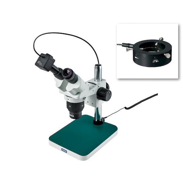 - 特徴 お手頃・対物レンズ切換式 × カメラで確認・保存 場所を取らない標準サイズのベース(リング照明付) 1×/2×切換式対物レンズの価格を抑えた実体顕微鏡と、価格と性能を両立した300万画素USBカメラのセットです。 使い勝手のよいLEDリング照明付き。 カメラを顕微鏡に取り付けるアダプターは、視野中央を拡大して表示するタイプです。 比較的小さい対象の拡大観察におすすめです。 ベース寸法:200(W)×255(D)mm 撮像素子:1/2.5 CMOSイメージセンサ 有効画素数:2048×1536(300万画素) 動作環境:Windows 8 以降(32bit及び64bit)日本マイクロソフト社のサポートが終了したOSでご利用中に問題が発生した場合の保障・サポート対応は行っておりません。 出力コネクタ:USB 2.0 総合倍率(倍):顕微鏡:5/10/20×|カメラ:31/63/130倍 24型ワイドモニター(解像度1920×1080)使用時 視野数(mm):顕微鏡:40/20/10mmφ|カメラ:17×13〜4.2×3.2mm 作動距離(mm):顕微鏡:140/74mm|カメラ:150/84mm 顕微鏡 顕微鏡 マイクロスコープ LKIT544
